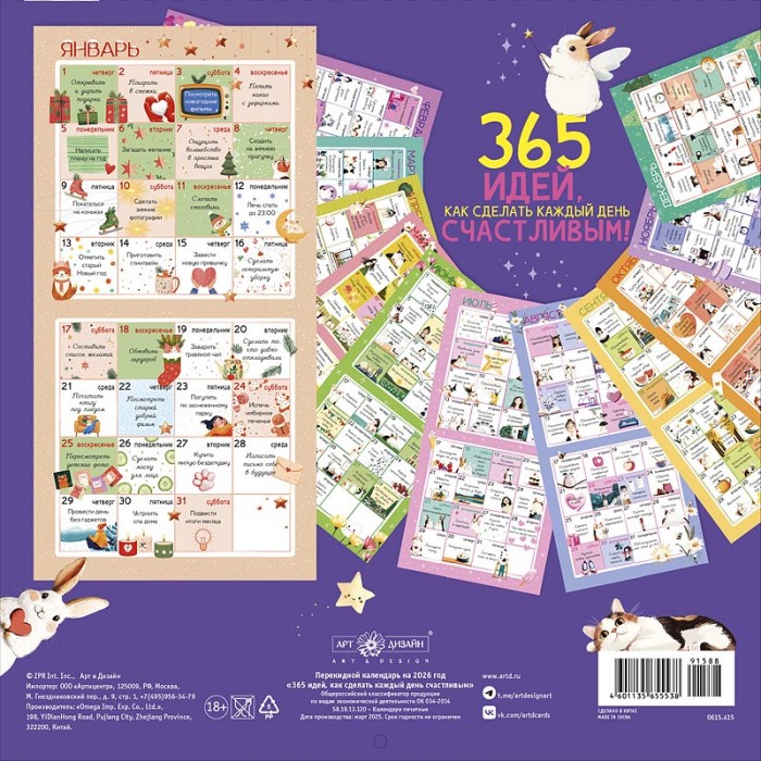 Календарь перекидной настенный 365 идей, как сделать каждый день счастливым! 2026