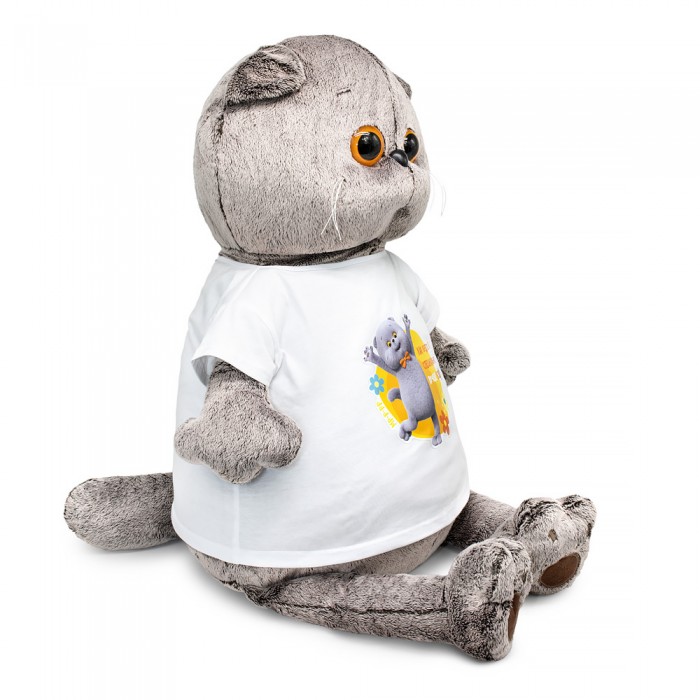 На коте Басике классная футболка из белого х/б трикотажа. Спереди на футболке авторский принт с изображением кота Басика из мультсериала и надписью «Как будто я специально лучше всех».